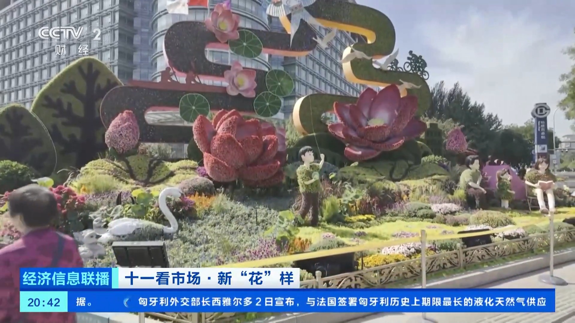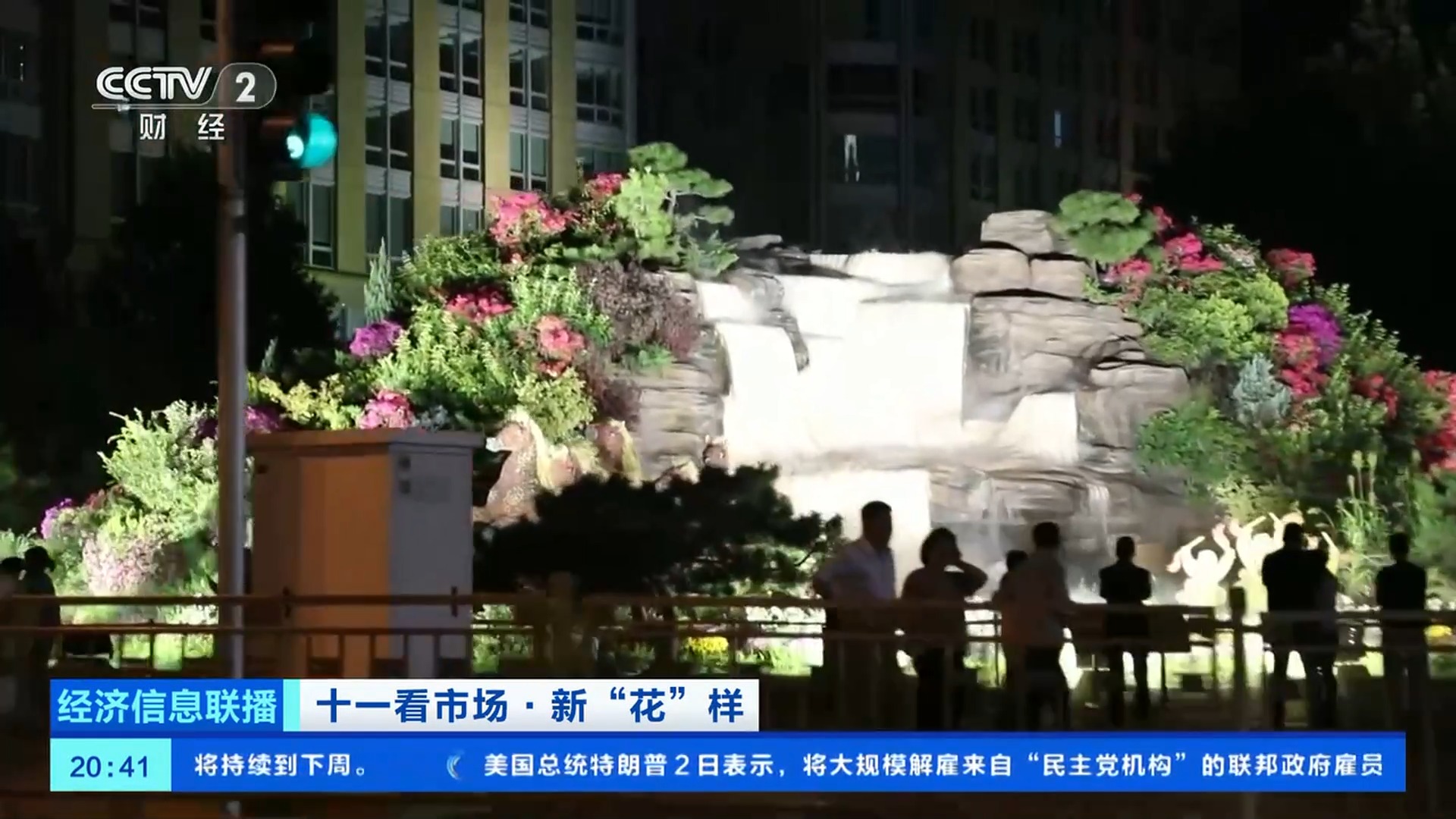 總臺(tái)央視記者 王聞聰:今年北京天安門廣場(chǎng)中心花壇的大花籃和長(zhǎng)安街沿線的10組立體花壇,都在國(guó)慶中秋假期增添了夜間照明設(shè)施,讓夜晚的花壇更加引人注目。北京東單東南角的“黃河贊歌”立體花壇,也被稱為是“會(huì)唱歌的花壇”。在花壇上不僅能看到微觀的壺口瀑布、奔騰的駿馬、載歌載舞的人群,還有水霧、音樂等聲光電技術(shù),更加逼真地還原了黃河之水天上來(lái)的氣勢(shì)。晚上八點(diǎn),這里仍有大量游客前來(lái)拍照打卡。