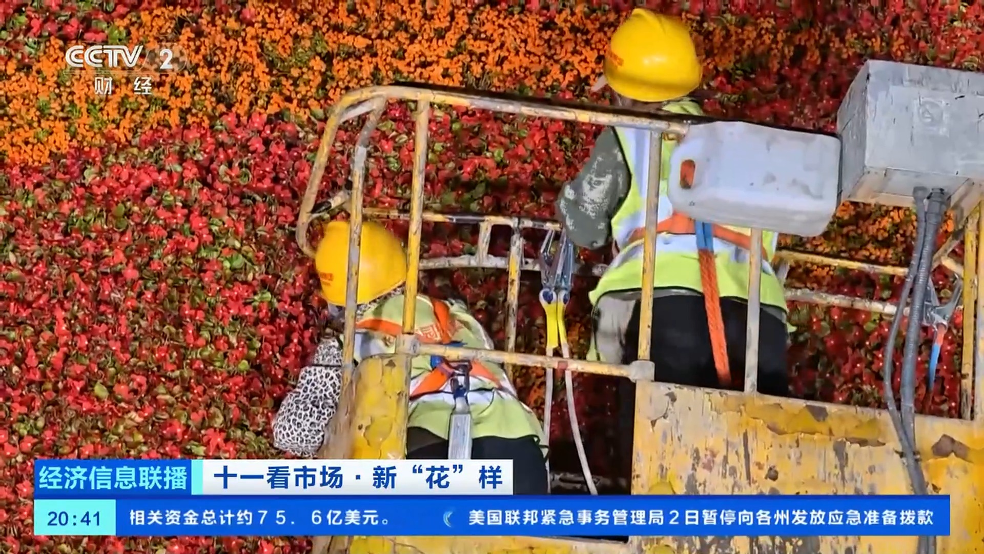 總臺(tái)央視記者 王聞聰:今年,在花壇的底部布置了一個(gè)直徑達(dá)45米的向日葵圖案,寓意朵朵葵花向太陽(yáng)。這里面的花沒有那么大,但是,有兩種具有自主知識(shí)產(chǎn)權(quán)的花,分別是一串紅“奇跡”和小菊“絢秋星光”。他們是經(jīng)過(guò)了近10年時(shí)間,雜交選育得到的新優(yōu)品種,這兩種植物都是已經(jīng)能夠大面積應(yīng)用在園林綠化上的品種,在大花籃的花壇應(yīng)用總量近3萬(wàn)株。