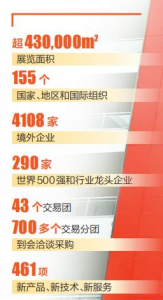 展覽面積超過(guò)43萬(wàn)平方米,155個(gè)國(guó)家、地區(qū)和國(guó)際組織參與,4108家境外企業(yè)參展,290家世界500強(qiáng)和行業(yè)龍頭企業(yè)參展……在八方來(lái)客眼中,進(jìn)博會(huì)越長(zhǎng)越“高”、越來(lái)越“壯”。