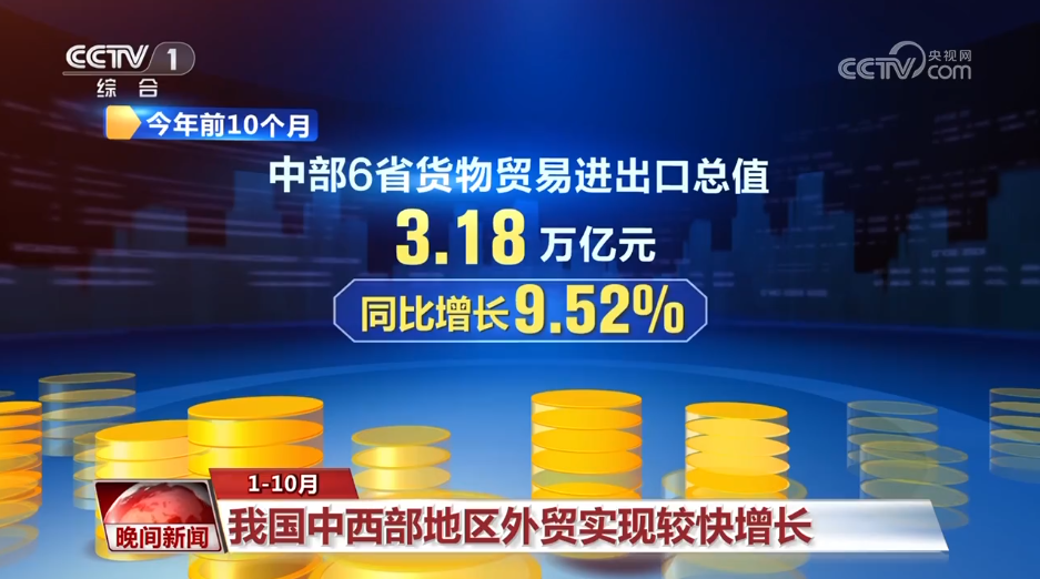 今年前10個(gè)月,中部6省貨物貿(mào)易進(jìn)出口總值3.18萬億元,同比增長(zhǎng)9.52%?!靶氯龢印碑a(chǎn)品出口增長(zhǎng)47.35%。其中,電動(dòng)汽車增長(zhǎng)125.39%,高新技術(shù)產(chǎn)品占中部地區(qū)出口總值近三成。