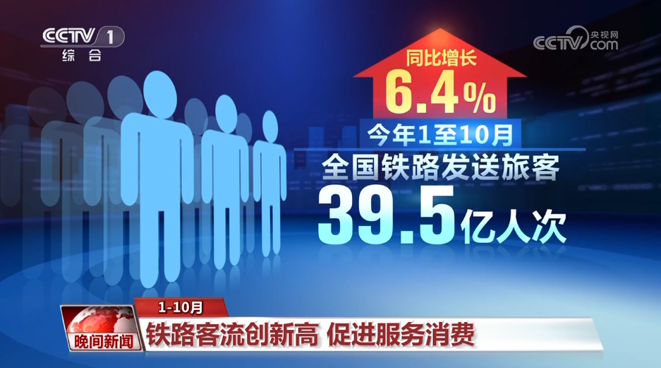 國(guó)鐵集團(tuán)11月17日發(fā)布的數(shù)據(jù)顯示,今年1至10月,全國(guó)鐵路發(fā)送旅客39.5億人次,同比增長(zhǎng)6.4%,客流總量和單日客流量均創(chuàng)歷史新高。 進(jìn)入四季度,全國(guó)鐵路調(diào)整列車運(yùn)行圖,并對(duì)130余條線路動(dòng)車組列車,實(shí)行最低4折票價(jià)優(yōu)惠。學(xué)生、兒童、傷殘軍人等旅客購(gòu)票享受“折上折”;不同年齡段常旅客會(huì)員可獲雙倍或三倍積分;一系列優(yōu)惠措施,提升了旅客的出行意愿。