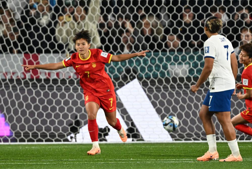 8月1日,中國(guó)隊(duì)球員王霜(左)慶祝罰中點(diǎn)球。當(dāng)日,在澳大利亞阿德萊德舉行的2023年國(guó)際足聯(lián)女足世界杯小組賽D組比賽中,中國(guó)隊(duì)對(duì)陣英格蘭隊(duì)。新華社記者 毛思倩 攝
