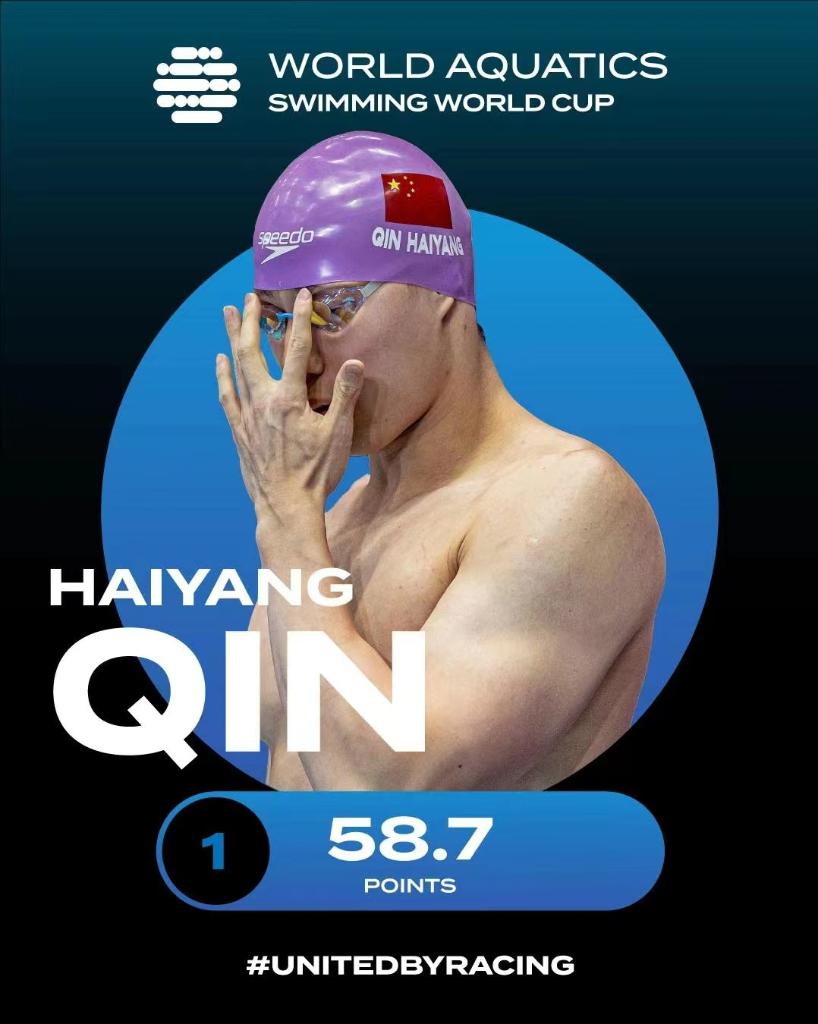 世錦賽“三冠王”覃海洋在柏林站繼續(xù)蛙泳“套餐”,改寫(xiě)三項(xiàng)世界杯紀(jì)錄:50米26秒29;100米57秒69,平亞洲紀(jì)錄;200米2分07秒45。董志豪以2分08秒60獲得200米蛙泳銀牌。其中,100米蛙泳堪稱(chēng)“強(qiáng)強(qiáng)對(duì)抗”:覃海洋與英國(guó)的兩屆奧運(yùn)冠軍皮蒂、今年世錦賽的并列亞軍三人組——荷蘭的坎明加、意大利的馬丁嫩吉和美國(guó)老將尼克·芬克同場(chǎng)較量,最終覃海洋更勝一籌,皮蒂名列第六。