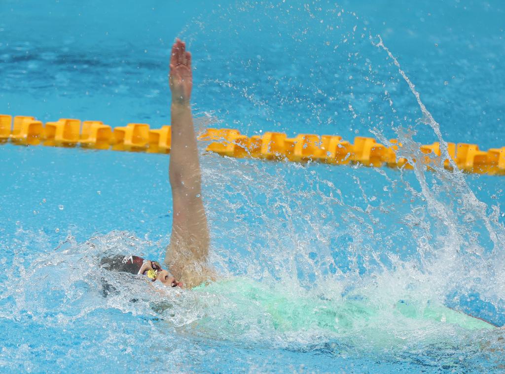 在廣西體育中心游泳跳水館,當(dāng)日進(jìn)行的游泳比賽角逐激烈。上海隊在女子大學(xué)甲組400米自由泳、男子和女子大學(xué)甲組50米仰泳、女子中學(xué)組50米仰泳、男子大學(xué)乙組100米蛙泳中摘得金牌。