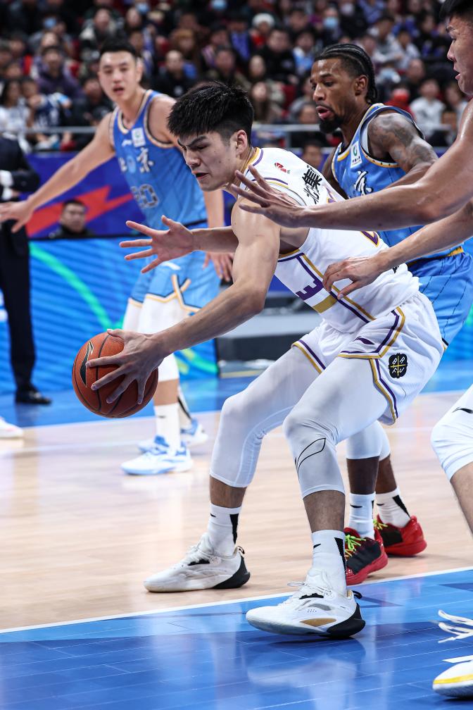 11月15日,北控隊(duì)球員陳國豪(前左)在對(duì)陣北京隊(duì)的比賽中。新華社記者 吳壯 攝