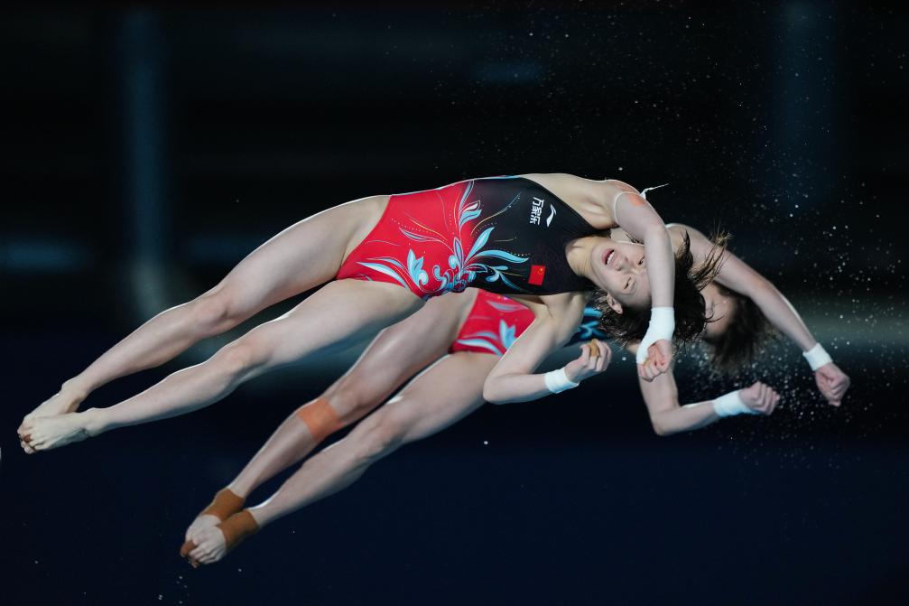 決賽中,與2022布達(dá)佩斯和2023福岡兩屆世錦賽情況相似,中國(guó)“王牌組合”占據(jù)絕對(duì)優(yōu)勢(shì)。陳芋汐/全紅嬋5次試跳,每一輪都得到最高分,一路領(lǐng)跑,最終以362.22分折桂,實(shí)現(xiàn)世錦賽“三連冠”。