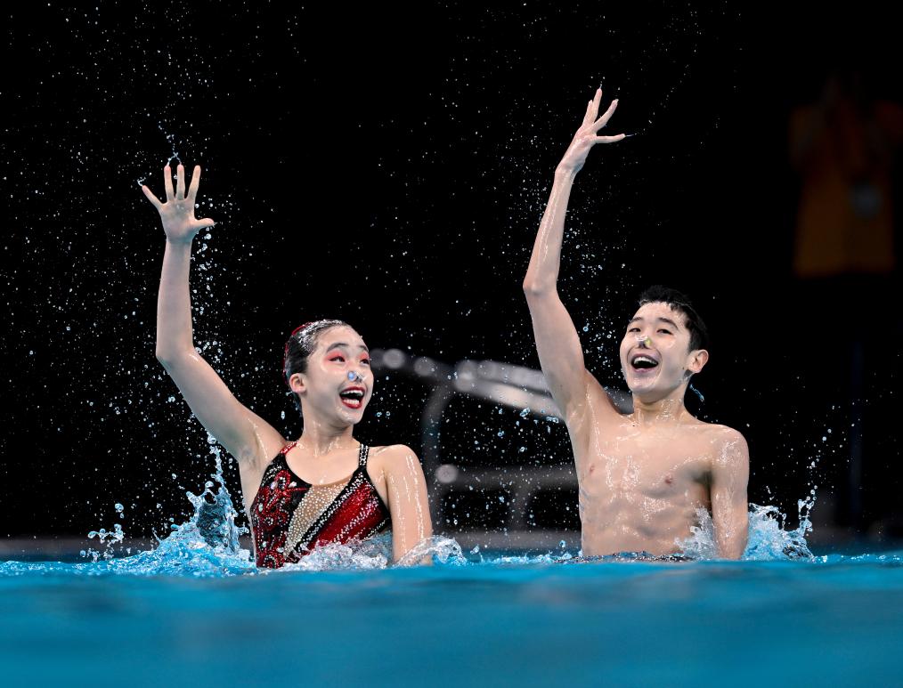 意大利隊(duì)、哈薩克斯坦隊(duì)和西班牙隊(duì)分獲混合自由自選項(xiàng)目前三名。中國(guó)隊(duì)顧嘉虞/郭牧兮位列第四?!敖裉彀l(fā)揮出了訓(xùn)練水平,我覺得自己需要增強(qiáng)力量,跟其他男選手還有差距,要繼續(xù)努力?!惫临庹f(shuō)。