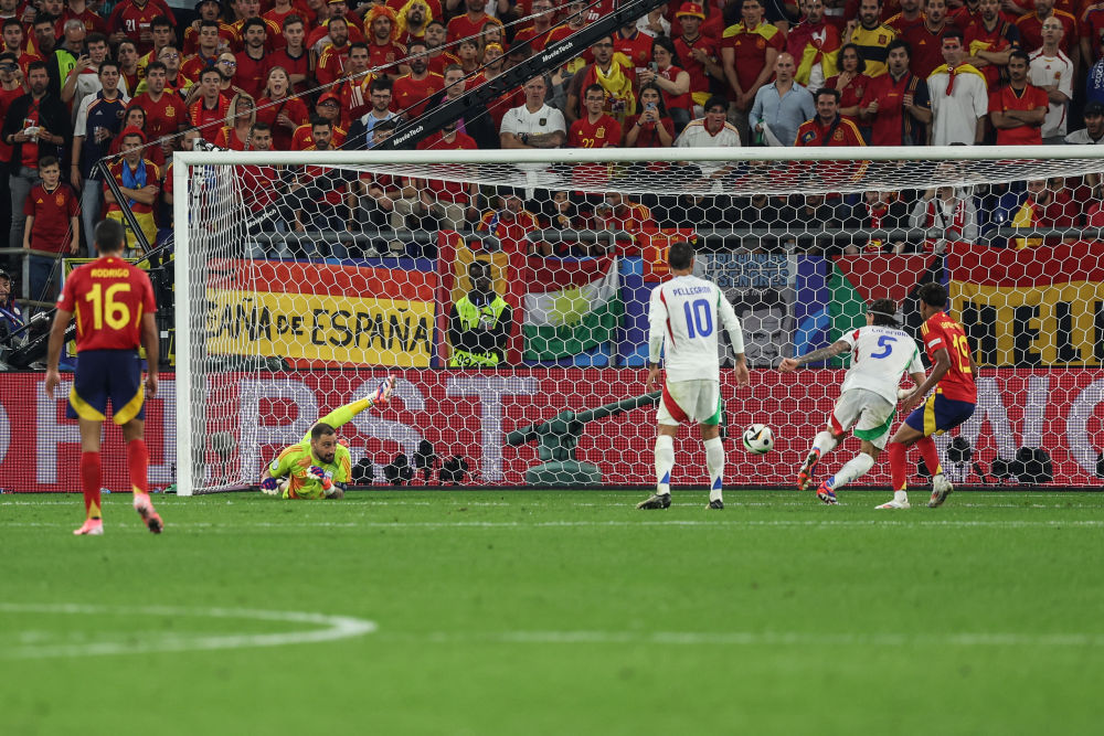 下半場西班牙隊(duì)延續(xù)攻勢,威廉姆斯繼續(xù)成為球隊(duì)爆點(diǎn),與他對位的意大利隊(duì)邊后衛(wèi)迪洛倫佐苦不堪言。第55分鐘,威廉姆斯邊路傳中,莫拉塔前點(diǎn)頭球攻門被唐納魯馬單掌撲出,但意大利隊(duì)后衛(wèi)卡拉菲奧里避閃不及自擺烏龍,“斗牛士”軍團(tuán)1:0領(lǐng)先。