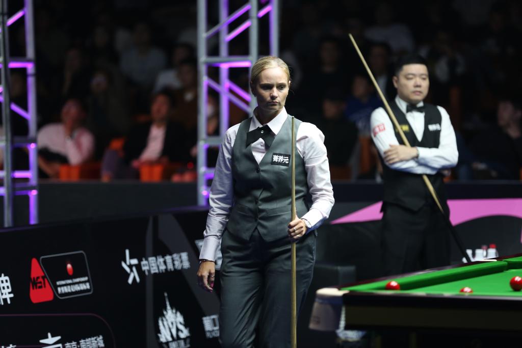 2022年女子斯諾克世錦賽冠軍、泰國(guó)選手旺哈魯泰當(dāng)日表現(xiàn)不俗,在1:4落后的情況連追兩局。不過(guò)奧沙利文技高一籌,還是以6:3獲勝。丁俊暉則以6:0完勝39歲的英格蘭女子名將埃文斯。丁俊暉賽后表示自己手感還可以,有些慢熱,很多球在適應(yīng)中。