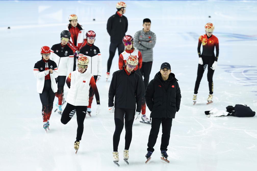 2月6日,中國隊在賽前訓(xùn)練中。新華社記者 鄭煥松 攝