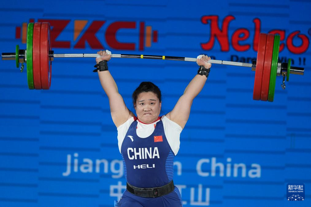 5月13日,中國選手廖桂芳在抓舉比賽中。最終,她獲得抓舉、挺舉、總成績?nèi)椆谲姡⒎謩e以125公斤打破抓舉世界紀錄、279公斤打破總成績世界紀錄。新華社記者 侯昭康 攝