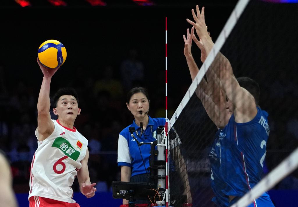 次局,塞爾維亞隊加強對中國隊4號位強攻的限制,一度握有4分領(lǐng)先優(yōu)勢。中國隊提升發(fā)球、攔防等細(xì)節(jié)的質(zhì)量,在局中階段將比分趕上,并通過俞元泰等人的三人攔網(wǎng)19:18反超比分。隨后,王濱發(fā)球滾網(wǎng)得分,雖然塞爾維亞隊連追兩分,但隊長伊沃維奇跳發(fā)出界,中國隊25:23再勝一局。