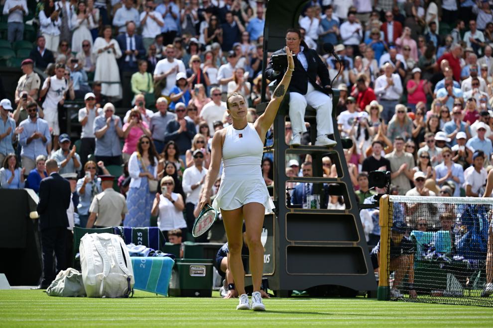 7月2日,薩巴倫卡在比賽后慶祝。新華社記者 趙丁喆 攝