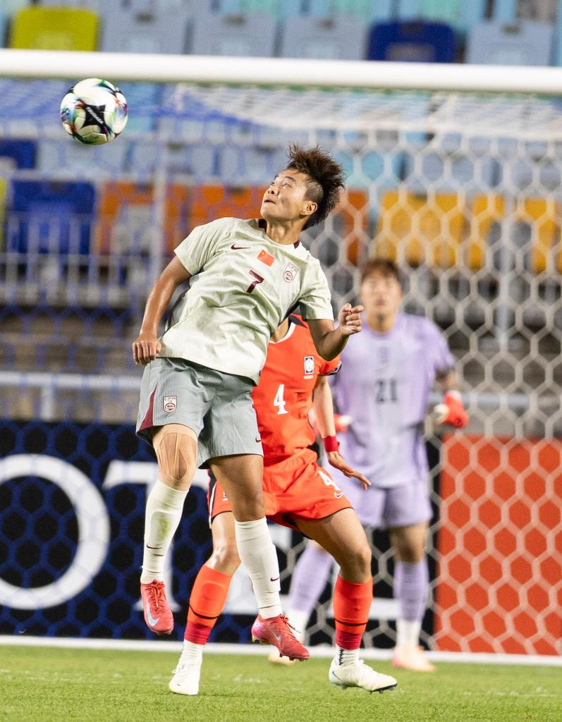 開(kāi)局第15分鐘,中國(guó)隊(duì)姚偉一記遠(yuǎn)射幫助球隊(duì)1:0獲得領(lǐng)先。但隨后韓國(guó)隊(duì)逐漸形成高位壓迫,多次在攻防轉(zhuǎn)換間沖擊中國(guó)隊(duì)后防線。上半場(chǎng)補(bǔ)時(shí)階段,韓國(guó)隊(duì)張瑟琪扳平比分。下半場(chǎng)第67分鐘,姚偉頭球助攻,邵子欽頭球接力破門(mén),中國(guó)隊(duì)2:1重奪領(lǐng)先優(yōu)勢(shì)。整場(chǎng)比賽補(bǔ)時(shí)階段最后一分鐘,池笑然一記世界波幫助韓國(guó)隊(duì)追平比分。