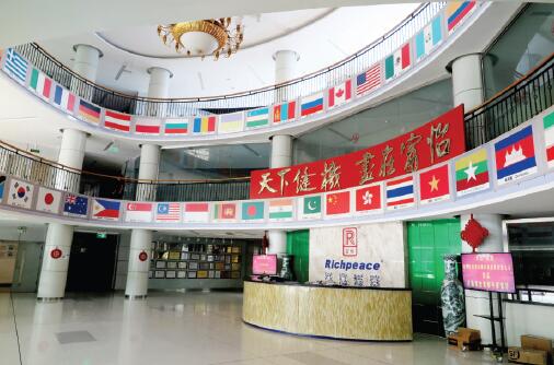 走進(jìn)天津?qū)氂娔X機(jī)械有限公司的大門,迎面正對的是辦公綜合樓,樓頂中央聳立著“富怡(Richpeace)”注冊商標(biāo),樓頂從左至右用紅字排列著公司的主要產(chǎn)品種類:“電腦繡花機(jī)”“電腦絎縫機(jī)”“電腦絎繡機(jī)”“激光切割雕刻設(shè)備”“服裝CAD軟件”“繪圖儀”“切割機(jī)”“鋪布機(jī)”“電腦裁床”“全自動(dòng)縫紉機(jī)”。