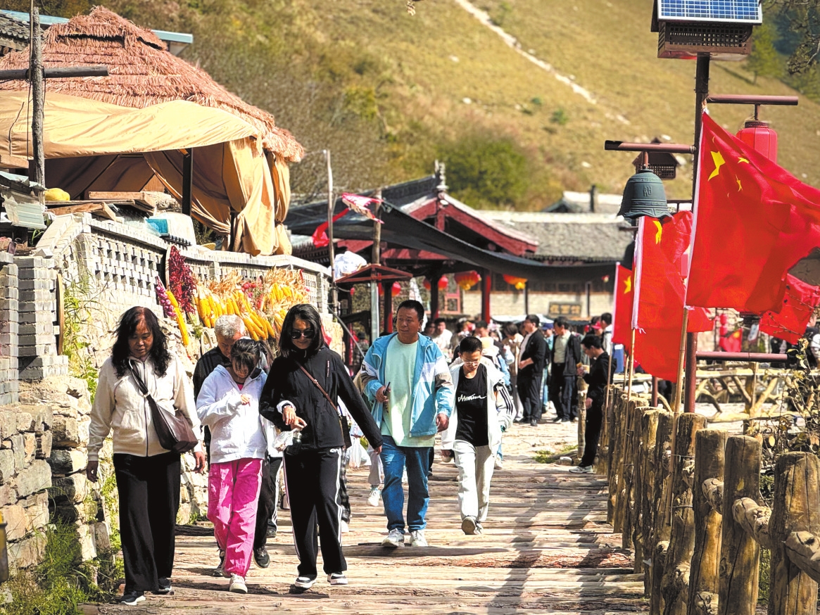 懸空村景點(diǎn)憑借獨(dú)特的“空中曬秋”景觀,成為游客的熱門選擇。這座擁有300年歷史的“天上人家”,直接把秋天的糧倉搬上了絕壁,玉米、辣椒、南瓜、大蒜……隨手一拍都是豐收大片,讓“空中曬秋”成為國(guó)慶期間的特色記憶點(diǎn)。