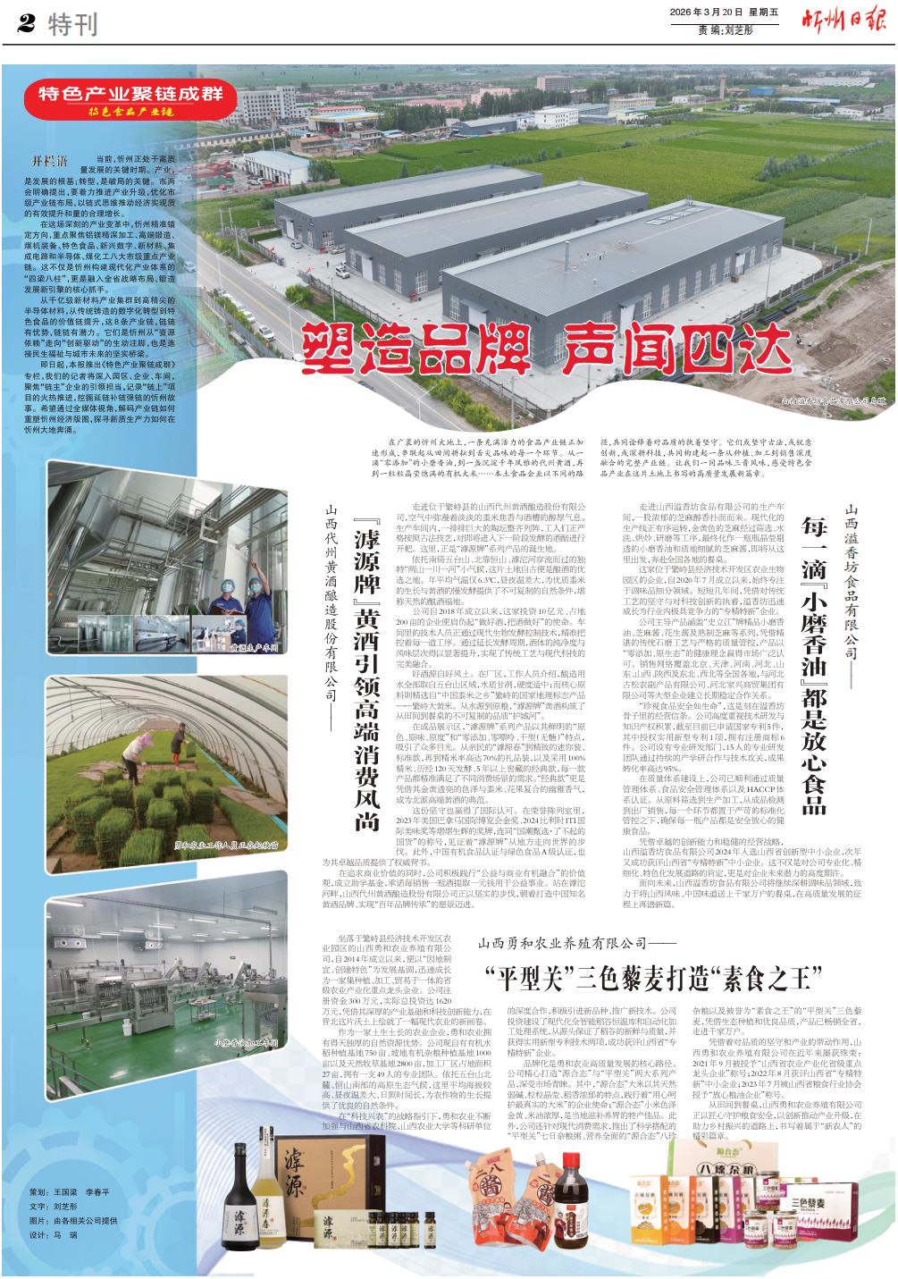 在廣袤的忻州大地上,一條充滿(mǎn)活力的食品產(chǎn)業(yè)鏈正加速形成,串聯(lián)起從田間耕耘到舌尖品味的每一個(gè)環(huán)節(jié)。從一滴“零添加”的小磨香油,到一盞沉淀千年風(fēng)雅的代州黃酒,再到一粒粒晶瑩飽滿(mǎn)的有機(jī)大米……本土食品企業(yè)以不同的路徑,共同詮釋著對(duì)品質(zhì)的執(zhí)著堅(jiān)守。它們或堅(jiān)守古法,或銳意創(chuàng)新,或深耕科技,共同構(gòu)建起一條從種植、加工到銷(xiāo)售深度融合的完整產(chǎn)業(yè)鏈。讓我們一同品味三晉風(fēng)味,感受特色食品產(chǎn)業(yè)在這片土地上書(shū)寫(xiě)的高質(zhì)量發(fā)展新篇章。
