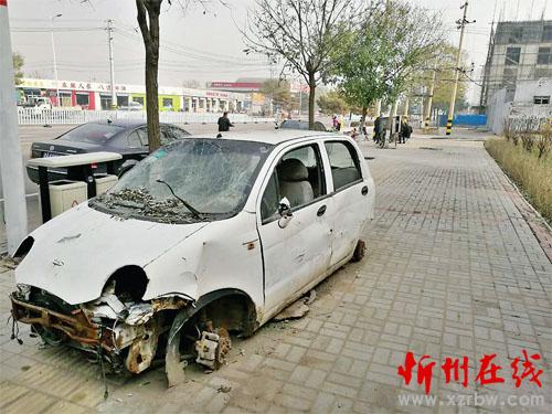 忻州城區(qū)長征西街路南、武警支隊大門西側(cè),有輛破爛不堪的汽車,長時間停在人行道上,且占據(jù)著盲道。希望相關(guān)部門能夠及時處理