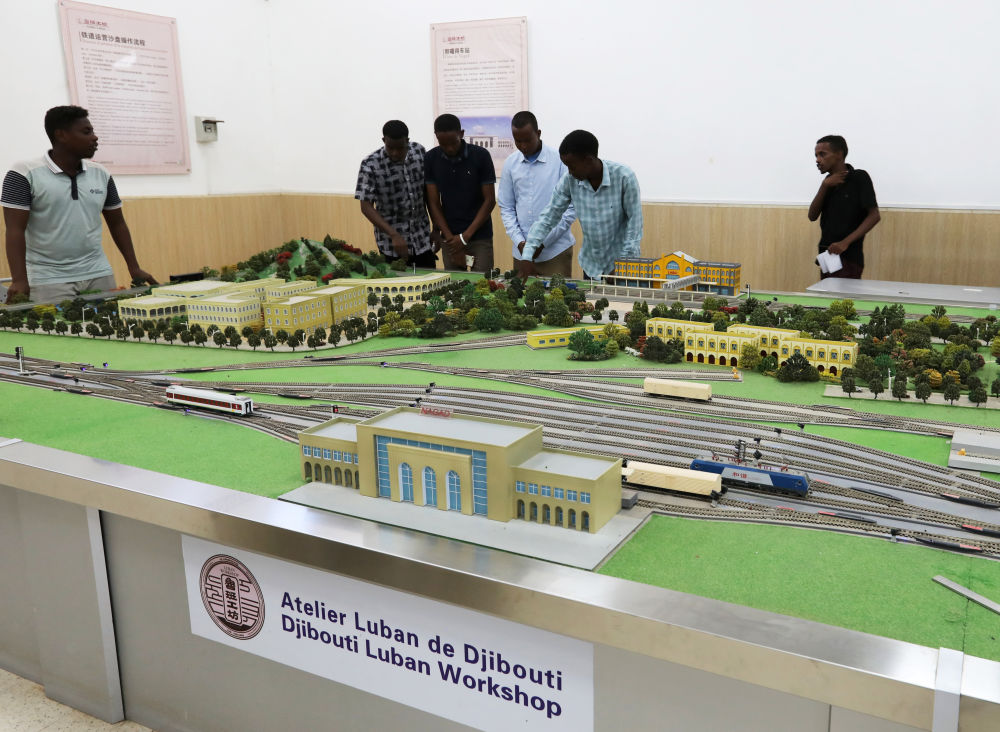 2022年9月19日,在位于吉布提首都吉布提市的吉布提工商學(xué)校,學(xué)生在魯班工坊鐵道運(yùn)營(yíng)沙盤(pán)教學(xué)區(qū)學(xué)習(xí)。新華社記者 董江輝 攝