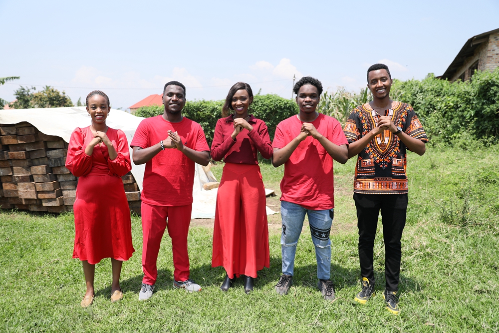 2024年2月7日,在盧旺達(dá)南方省卡莫尼地區(qū),盧旺達(dá)青年團(tuán)隊(duì)成員向鏡頭前觀眾送上新春祝福。新華社發(fā)(黃萬(wàn)晴 攝)