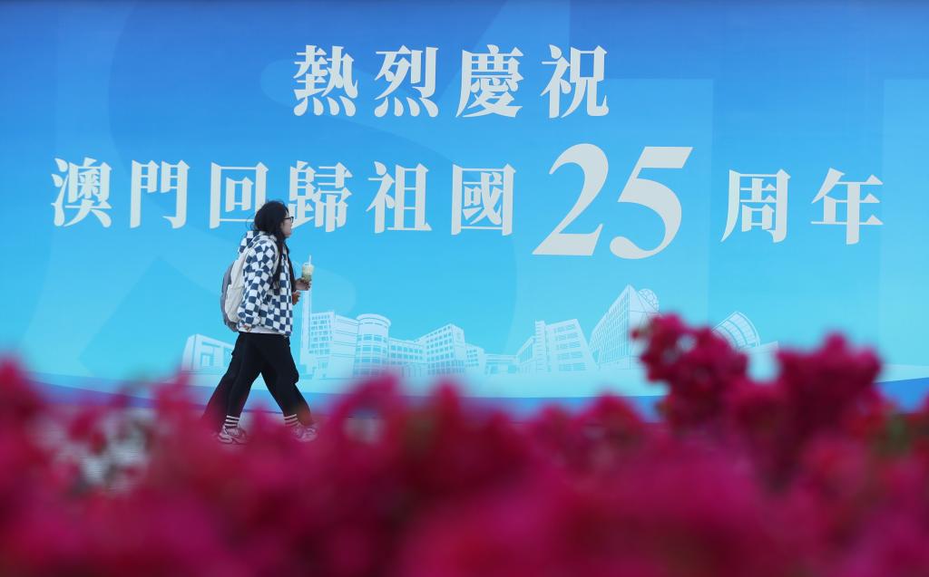 這是屬于澳門和全體中華兒女的光輝日子。25年前,中國政府恢復(fù)對(duì)澳門行使主權(quán),中華人民共和國澳門特別行政區(qū)成立,飽經(jīng)滄桑的游子終于回到祖國母親懷抱,開啟嶄新的歷史紀(jì)元。25年來,在中央和祖國內(nèi)地大力支持下,澳門特別行政區(qū)政府和社會(huì)各界接續(xù)奮斗,具有澳門特色的“一國兩制”實(shí)踐取得舉世公認(rèn)的成功,憲法和澳門基本法確立的特別行政區(qū)憲制秩序牢固樹立,澳門各項(xiàng)事業(yè)全面進(jìn)步,國際影響力顯著提升,屹立于南海之濱的澳門特別行政區(qū)更加生機(jī)勃勃,祖國的“盛世蓮花”煥發(fā)出前所未有的絢麗光彩。