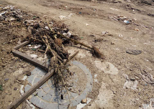 一位村民指著西面被垃圾包圍的一個(gè)鐵皮焊接成的小門說(shuō):“這就是我們?nèi)迦顺运乃?,水從井里抽出,通過(guò)管道送往距此地約300多米的蓄水池,然后在供給各家各戶,這是我們?nèi)逦ㄒ坏某运??!?/p>