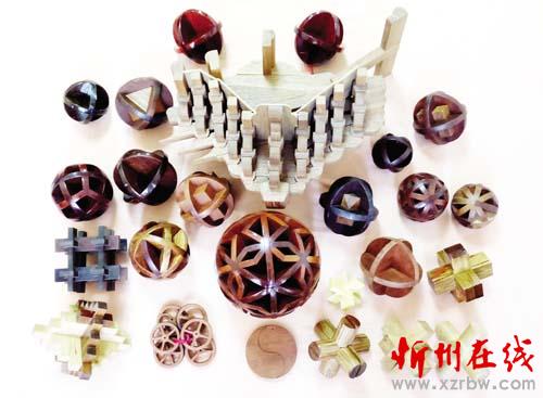 卯竅傳奇——五十六民族大團結(jié):是用56塊木頭做的一個球體,每一塊木頭都是用卯竅連接,卯竅結(jié)構(gòu)異常復(fù)雜。外形為祿福圖案,寓意56個民族大團結(jié),天祿地祿人間福。它的種類有80多種,做一個得兩個多月的時間。