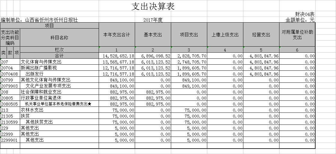 忻州日報(bào)社是一級預(yù)算單位,無下屬單位。部門決算只有一個單位,即忻州日報(bào)社。