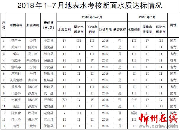 根據(jù)省環(huán)境監(jiān)測中心站和忻州市環(huán)境監(jiān)測站關于2018年1-7月國家、省考斷面水質監(jiān)測數(shù)據(jù)的評價結果,現(xiàn)將有關情況通報如下: