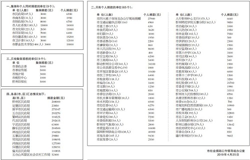 自2018年12月10日市委、市政府辦公廳發(fā)出《關(guān)于開展“送溫暖、獻(xiàn)愛心”社會捐助活動的通知》(忻辦字【2018】86號)以來,市四大班子領(lǐng)導(dǎo)率先垂范,各縣(市、區(qū))、各單位高度重視,緊急部署,廣大干部職工積極響應(yīng),踴躍捐款,又一次掀起了“送溫暖、獻(xiàn)愛心”社會捐助活動的高潮。截至2019年4月25日下午4時,全市累計(jì)接收捐款2802113元,其中市直79個單位組織參加了此次捐助活動,共計(jì)捐款585095元;各縣(市、區(qū))接收捐款2217018元,為解決我市困難群眾的生產(chǎn)、生活問題,助推脫貧攻堅(jiān)起到了積極的作用?,F(xiàn)將活動進(jìn)展情況公告如下(市直單位以捐助時間先后為序):