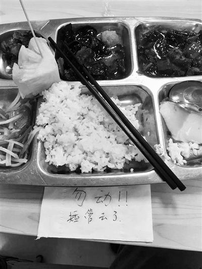 之所以要選擇這樣的方式,他解釋,因為當時餐廳里沒有其他同科同事,而且麻煩他人一直守著自己的餐盤也不可能,所以就希望留下紙條提示食堂工作人員不要收他的餐盤。而在去年,欒遠航就曾遇到過一次臨時離開,餐盤被收走的尷尬?!昂髞聿骞芎茼樌?,差不多20分鐘我就回來了,餐盤也沒被收走?!?欒遠航說。