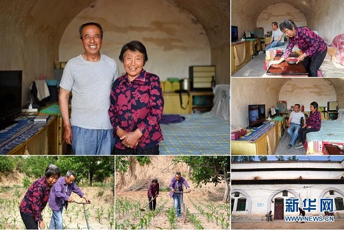 趙樹江和妻子魏煥英,都是1949年出生,家在山西省長治市武鄉(xiāng)縣南垴村。老兩口種了5畝玉米、1畝小米,還有核桃樹。2016年,趙樹江和魏煥英家的窯洞出現(xiàn)裂縫,他們申請進行了危房改造,經(jīng)過修理后,家里的房子煥然一新。 左上:趙樹江(左)和妻子魏煥英在家中合影;右上:魏煥英在打掃衛(wèi)生;右中:趙樹江(左)和妻子魏煥英在家里看電視;下右:魏煥英在院子里掃地;下左、下中:趙樹江(右)和妻子魏煥英在地里忙碌(拼版照片,6月12日攝)。 地處晉東南的山西省長治市,位于由太行山、太岳山環(huán)繞而成的上黨盆地中。在群山中、崖壁上,許多村莊自然條件惡劣,基礎設施落后,脫貧致富是大山深處人們的迫切心愿。 近年來,一場場脫貧攻堅戰(zhàn),在一個個深山村打響。政府全力探索脫貧路徑的同時,山區(qū)百姓因地制宜,靠自己的雙手和智慧走上致富路,交出了一份扎實的脫貧答卷。 記者在太行山、太岳山一路尋訪,記錄下多位70歲老人的生活。這些共和國的同齡人,親歷了山鄉(xiāng)的巨變,見證著長治山區(qū)脫貧攻堅偉大工程的一步步推進。 新華社記者 詹彥 攝