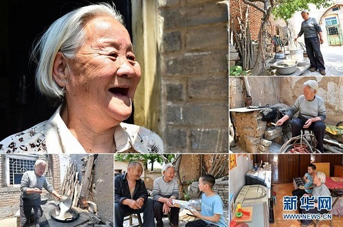 田何英,女,1949年出生,山西省長治市潞城區(qū)上黃村人,全家人靠種植5畝糧食地過日子,家人的重病使其陷入貧困。2015年開始,田何英和家人享受種植產(chǎn)業(yè)補貼和金融扶貧補貼,孫子上學(xué)享受“雨露計劃”補貼。2017年,田何英家脫了貧。 左上:田何英肖像;右上:田何英在院子里;右中:田何英在生火做飯;右下:田何英和孫子一起看電視;下中:田何英(中)和家人在院子里;下左:田何英在做飯(拼版照片,6月11日攝)。 地處晉東南的山西省長治市,位于由太行山、太岳山環(huán)繞而成的上黨盆地中。在群山中、崖壁上,許多村莊自然條件惡劣,基礎(chǔ)設(shè)施落后,脫貧致富是大山深處人們的迫切心愿。 近年來,一場場脫貧攻堅戰(zhàn),在一個個深山村打響。政府全力探索脫貧路徑的同時,山區(qū)百姓因地制宜,靠自己的雙手和智慧走上致富路,交出了一份扎實的脫貧答卷。 記者在太行山、太岳山一路尋訪,記錄下多位70歲老人的生活。這些共和國的同齡人,親歷了山鄉(xiāng)的巨變,見證著長治山區(qū)脫貧攻堅偉大工程的一步步推進。 新華社記者 曹陽 攝