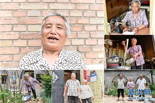 鄭引蘭,女,1949年出生,山西省長治市潞城區(qū)西靳村人,2015年因家人患病而被納入建檔立卡貧困戶?,F(xiàn)在,多項(xiàng)扶貧政策讓全家人的生活有了明顯改善,當(dāng)?shù)卣畮椭7扛脑斓母G洞也即將完工。 左上:鄭引蘭肖像;右上:鄭引蘭在使用縫紉機(jī);右中:鄭引蘭在廚房盛飯;右下:鄭引蘭(中)一家人合影;下中:鄭引蘭和兒子走出家門;下左:鄭引蘭在院子里給植物澆水(拼版照片,6月12日攝)。 地處晉東南的山西省長治市,位于由太行山、太岳山環(huán)繞而成的上黨盆地中。在群山中、崖壁上,許多村莊自然條件惡劣,基礎(chǔ)設(shè)施落后,脫貧致富是大山深處人們的迫切心愿。 近年來,一場場脫貧攻堅(jiān)戰(zhàn),在一個(gè)個(gè)深山村打響。政府全力探索脫貧路徑的同時(shí),山區(qū)百姓因地制宜,靠自己的雙手和智慧走上致富路,交出了一份扎實(shí)的脫貧答卷。 記者在太行山、太岳山一路尋訪,記錄下多位70歲老人的生活。這些共和國的同齡人,親歷了山鄉(xiāng)的巨變,見證著長治山區(qū)脫貧攻堅(jiān)偉大工程的一步步推進(jìn)。 新華社記者 曹陽 攝