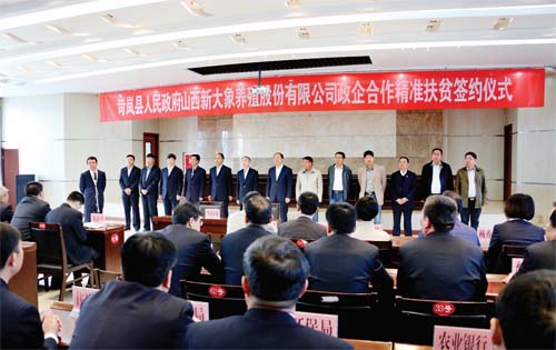 ???圖為岢嵐與山西新大象養(yǎng)殖股份有限公司政企合作精準扶貧簽約儀式現場。尹艷 攝??