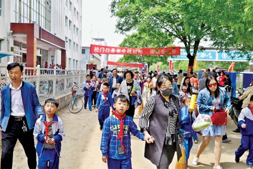 下學(xué)時段長征路小學(xué)門前秩序井然