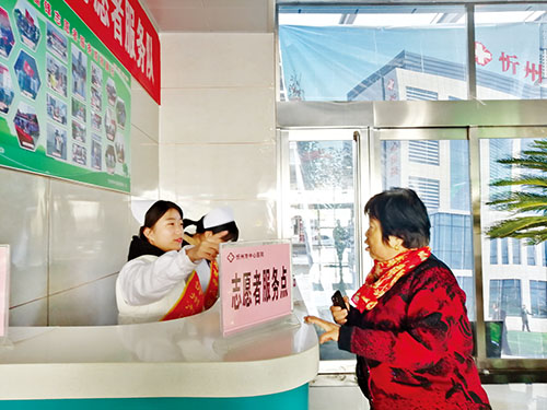 本報訊(實習(xí)記者 王菲)“大姐,您是哪里不舒服?”“我是來做檢查的,慢性病是在哪看呢?”“這個不在咱們這棟樓,我陪您過去吧。”在忻州市中心醫(yī)院的門診大廳,一位大姐看到大廳里人來人往,不知道該到幾樓找哪位醫(yī)生看病,志愿者見狀,快步走上前去,面帶微笑地與大姐打招呼,并很快帶著大姐去了就診區(qū)。