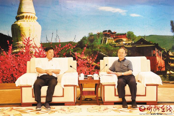 市委書(shū)記鄭連生與北京城建道橋建設(shè)集團(tuán)有限公司黨委書(shū)記姚自然會(huì)談。本報(bào)記者 劉紀(jì)森 攝