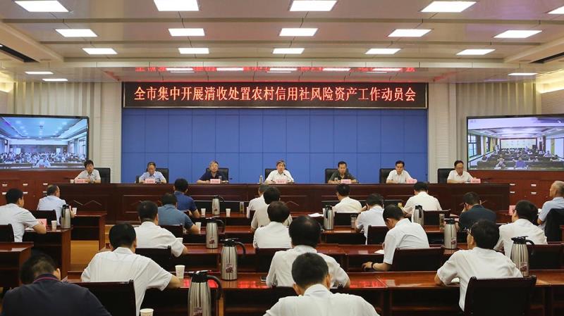 全市集中開展清收處置農(nóng)信社風(fēng)險(xiǎn)資產(chǎn)工作動員會會場。宮清華 攝