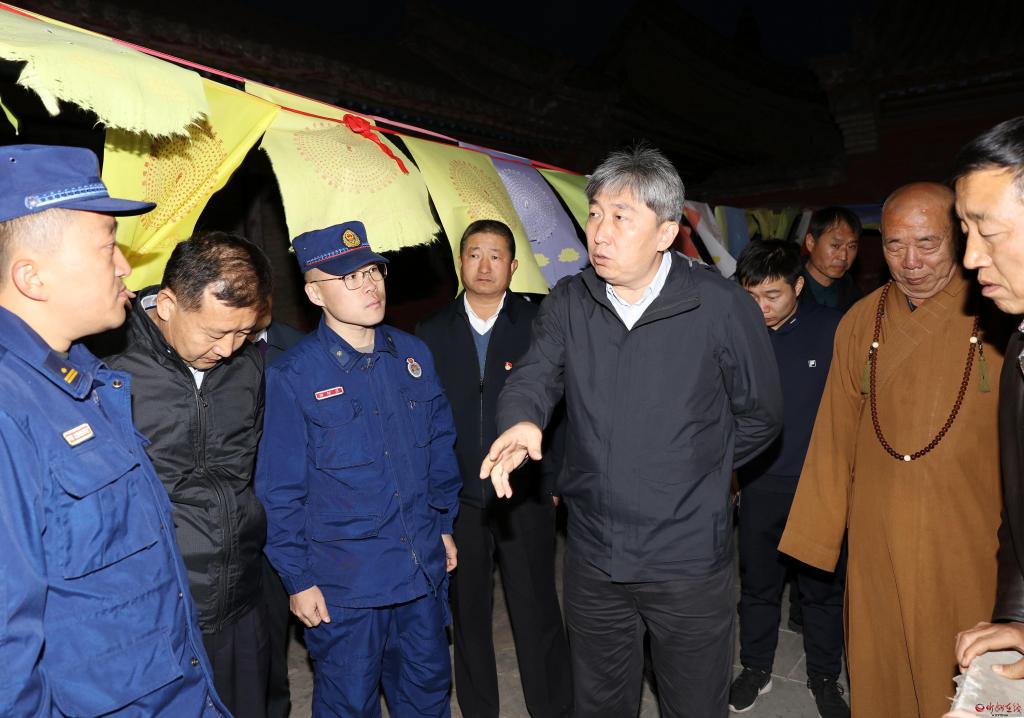 秋冬季節(jié)天干物燥,森林防火消防安全進(jìn)入關(guān)鍵階段。朱曉東沿途察看作物秸稈收儲情況,專門到國保單位佛光寺、尊勝寺檢查消防安全工作,赴五臺縣應(yīng)急救援訓(xùn)練基地檢查森林消防應(yīng)急演練情況。他強(qiáng)調(diào),各級各部門要切實(shí)明確消防安全管理人和責(zé)任人,各單位特別是防火重點(diǎn)單位不僅要配齊配全各類消防器材,而且要確保管用能用。對巡查發(fā)現(xiàn)的消防隱患要及時消除,切實(shí)防患于未然。要加大宣傳力度,讓森林防火期嚴(yán)禁野外用火規(guī)定深入人心,切實(shí)轉(zhuǎn)變?yōu)槿罕姷淖杂X意識。要加強(qiáng)應(yīng)急隊(duì)伍實(shí)地演練,全面提升發(fā)現(xiàn)、處置和快速反應(yīng)出動的綜合應(yīng)急能力。