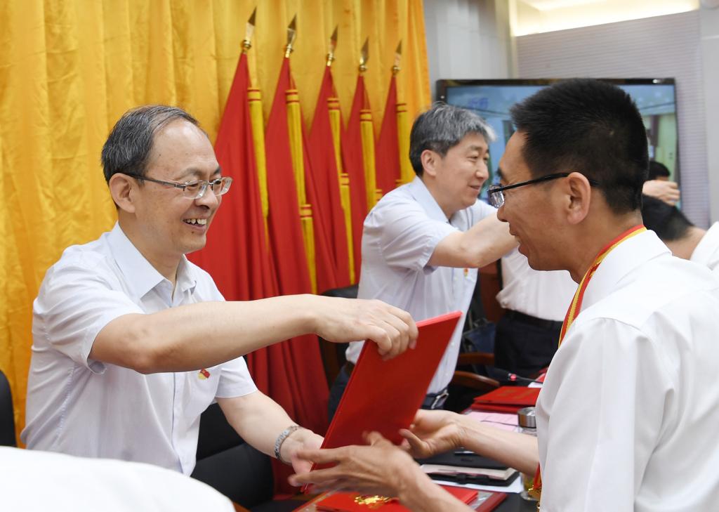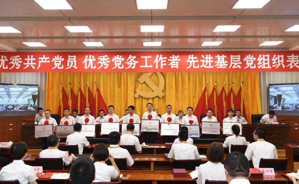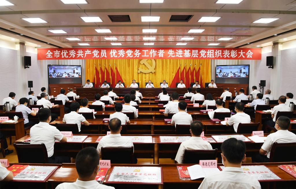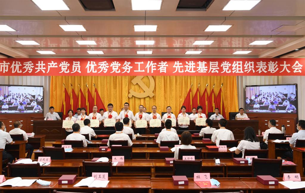 上午8時(shí)30分,大會(huì)正式開始,全體起立,奏唱國歌。來自全市各行各業(yè)、在工作中取得優(yōu)異成績的99名共產(chǎn)黨員、100名黨務(wù)工作者和100個(gè)基層黨組織,分別被授予“全市優(yōu)秀共產(chǎn)黨員”“全市優(yōu)秀黨務(wù)工作者”“全市先進(jìn)基層黨組織”榮譽(yù)稱號(hào)。受到表彰的優(yōu)秀個(gè)人和先進(jìn)集體代表先后上臺(tái)領(lǐng)獎(jiǎng),會(huì)場響起熱烈掌聲。