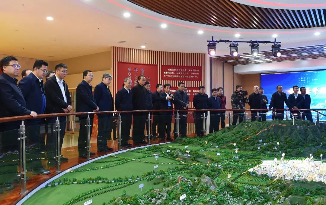 在原平經(jīng)濟(jì)技術(shù)開發(fā)區(qū)參觀沙盤模型。馮曉磊 攝