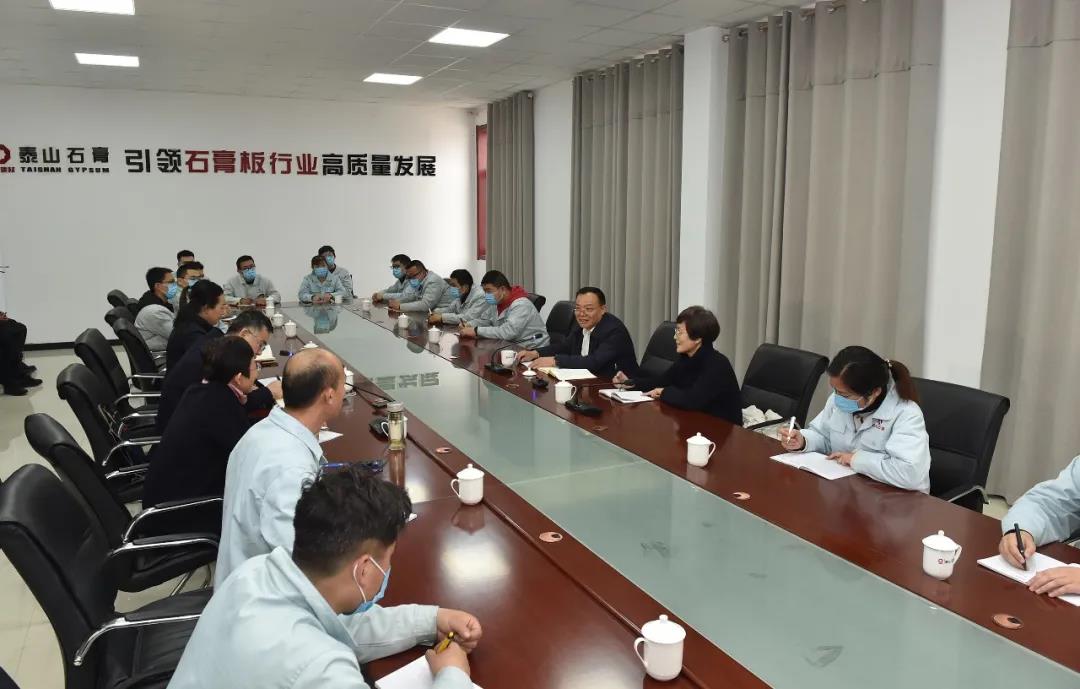 宣講團(tuán)在泰山石膏有限公司與企業(yè)黨員干部、職工代表面對面交流。馮曉磊 攝