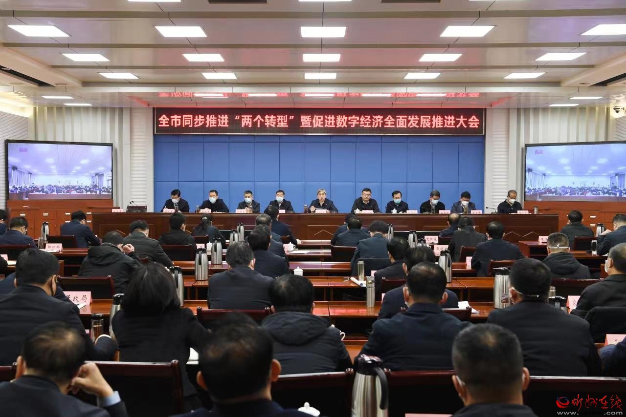 12月9日,全市同步推進(jìn)“兩個(gè)轉(zhuǎn)型”暨促進(jìn)數(shù)字經(jīng)濟(jì)全面發(fā)展大會(huì)召開(kāi)。市委書(shū)記朱曉東出席會(huì)議并講話(huà)。市委副書(shū)記、市長(zhǎng)李建國(guó)主持會(huì)議并講話(huà),市人大常委會(huì)主任王珍,市政協(xié)主席范建民,市領(lǐng)導(dǎo)劉卓良、趙新年、張文偉、溫建軍、張宇光等出席。