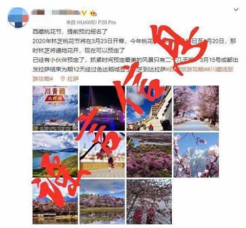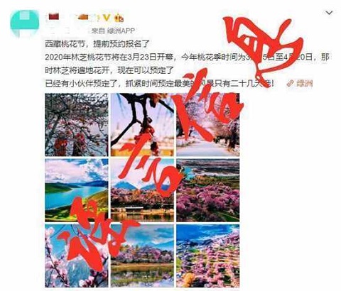 人民網(wǎng)林芝3月6日電(徐馭堯、張淑萍)近日,有人網(wǎng)上傳消息稱“2020年林芝桃花節(jié)將在3月23日開幕”,由此公開攬客,迷惑了不少游客朋友。