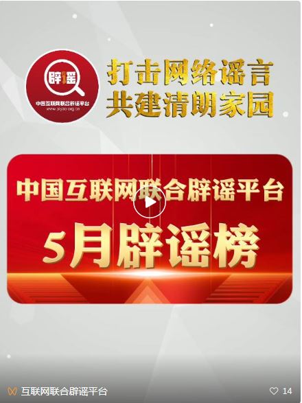 打擊網(wǎng)絡(luò)謠言 共建清朗家園 中國(guó)互聯(lián)網(wǎng)聯(lián)合辟謠平臺(tái)5月辟謠榜