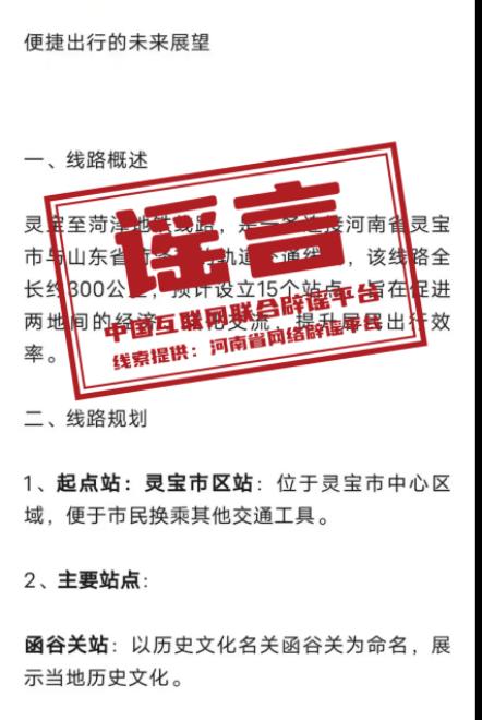 謠言:河南靈寶到山東菏澤將修建地鐵?