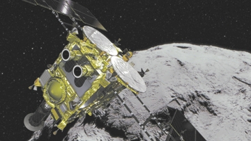 日本宇宙航空研究開(kāi)發(fā)機(jī)構(gòu)的小行星探測(cè)器“隼鳥(niǎo)2號(hào)”接近其目標(biāo)小行星“龍宮”。圖片來(lái)源:日本宇宙航空研究開(kāi)發(fā)機(jī)構(gòu)