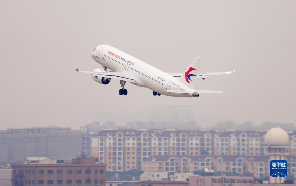 12月26日,國產(chǎn)大飛機C919在上海虹橋國際機場起飛。新華社發(fā)