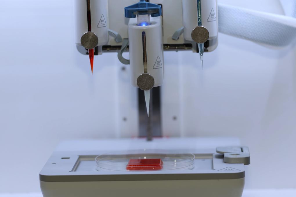 在陣陣規(guī)律的“打印”聲中,裝有紅色和白色“生物墨水”的打印噴頭來(lái)回移動(dòng),白色托盤(pán)里方塊形狀的“豬肉”逐漸變厚,色澤誘人……走進(jìn)南京農(nóng)業(yè)大學(xué)肉品質(zhì)量控制與新資源創(chuàng)制全國(guó)重點(diǎn)實(shí)驗(yàn)室,科研人員正在開(kāi)展3D生物打印細(xì)胞培養(yǎng)肉研究。